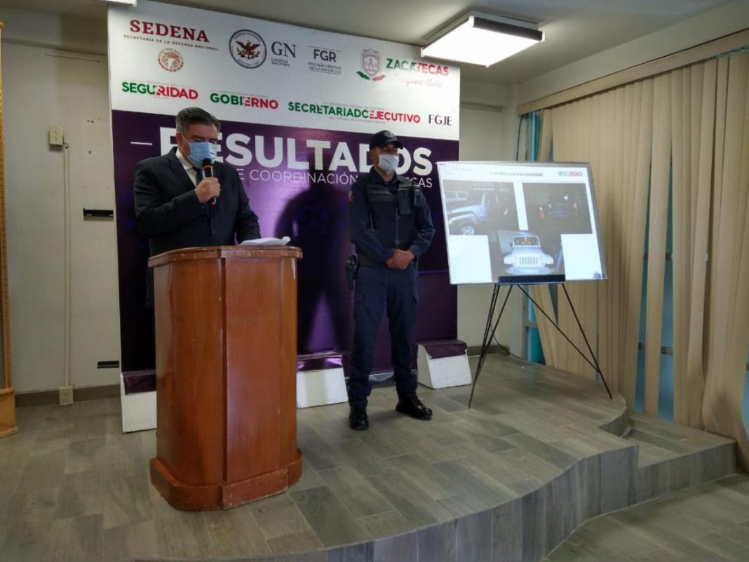 Zacatecas, Zac.- El Secretario de Seguridad Pública, Ismael Camberos Hernández, informó que, como parte de las operaciones que se desarrollan en el marco de la Estrategia de Seguridad, autoridades estatales aseguraron a 12 personas, un arsenal y droga, lo que da muestra de importantes resultados en favor de la seguridad de las y los zacatecanos.