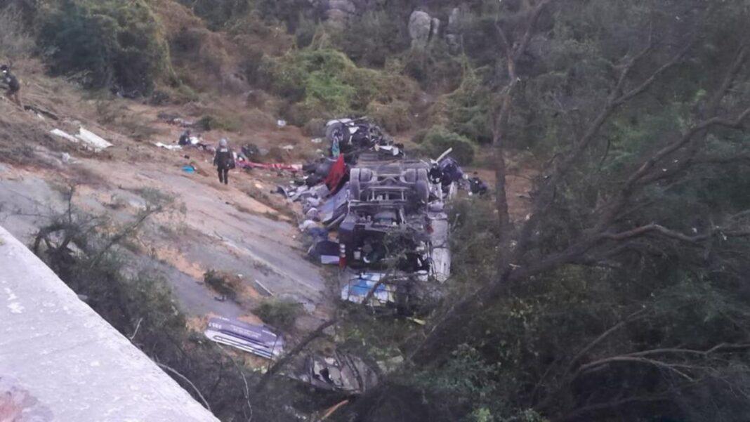 De acuerdo con la información con la que se cuenta, el accidente sobrevino cuando el remolque de un tráiler se desprendió y provocó primero el choque del autobús de pasajeros y su posterior volcadura y caída a un barranco.