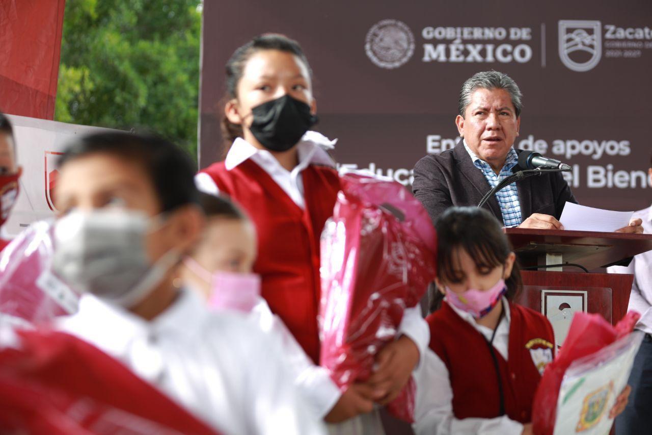 Juchipila, Zac., 16 de agosto de 2022. Este martes, el Gobernador David Monreal Ávila comenzó oficialmente el Programa Educación para el Bienestar, con el que se entregan paquetes de útiles y uniformes escolares.
