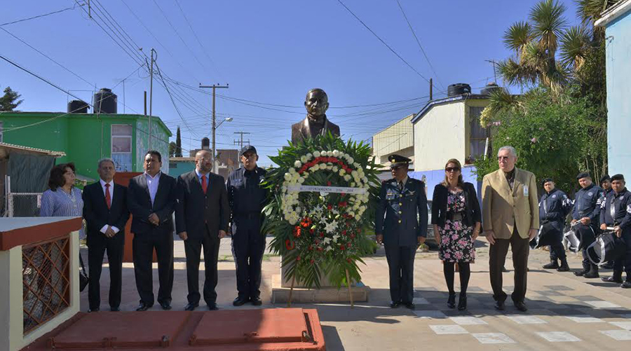 Conmemoración que inició con un acto cívico en la colonia Benito Juárez del municipio, mismo que fue encabezado por el Secretario de Gobierno, Daniel Isaac Ramírez Díaz, en representación del Alcalde, José Haro de la Torre.