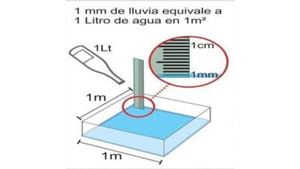 En otras palabras, un milímetro de lluvia es equivalente a un litro de agua por cada metro cuadrado de superficie.