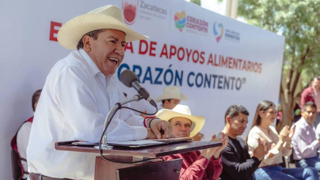 El Gobernador David Monreal Ávila subrayó que mediante el programa Corazón Contento se distribuyen canastas alimentarias con valor comercial de hasta 1 mil 350 pesos.