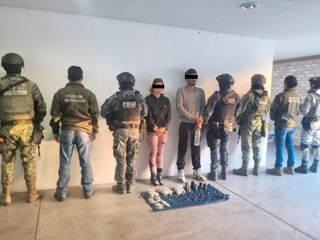 En el marco de las acciones implementadas para la pacificación del Estado, personal de la Fuerza de Reacción Inmediata Zacatecas (FRIZ), en coordinación con el Ejército Mexicano, la Guardia Nacional y la Policía de Investigación de la Fiscalía General de Justicia del Estado de Zacatecas, lograron la detención de dos personas que estaban en posesión de artefactos explosivos y probable droga.