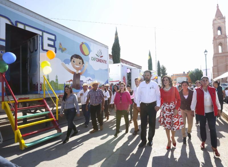 El Gobernador Alejandro Tello y su esposa, Cristina Rodríguez, llevaron a la comunidad de Tacoaleche la 28 edición del programa Feria Diferente del Sistema Estatal para el Desarrollo Integral de la Familia (Sedif), cuyo objetivo es acercar a la ciudadanía los distintos servicios que brindan las dependencias del Gobierno del Estado, como: expedición de actas de nacimiento, atención médica gratuita, abasto de medicamentos, exámenes de la vista, mastografías, papanicolaou, asesoría jurídica y muchos otros.