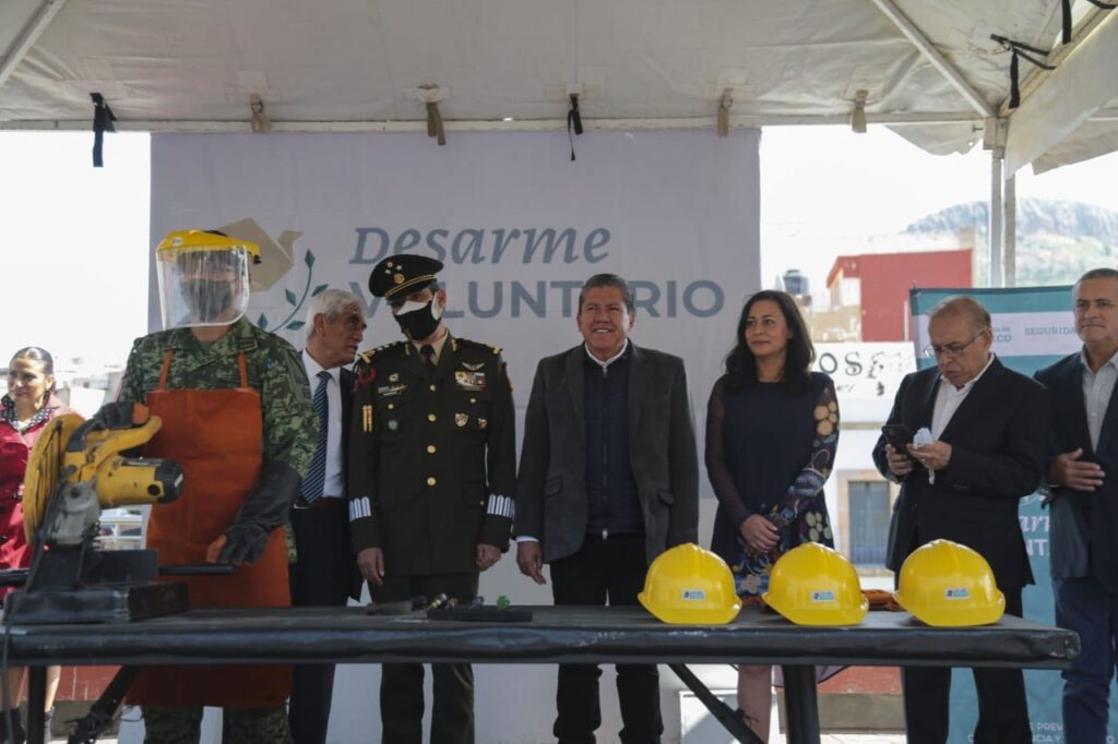 Zacatecas, Zac., 01 de septiembre de 2022. Como parte de la Estrategia Nacional de Seguridad, el Gobernador David Monreal Ávila y autoridades de la Secretaría de Seguridad y Protección Ciudadana (SSPC), la Secretaría de la Defensa Nacional (Sedena), Guardia Nacional (GN) y el municipio de Zacatecas pusieron en marcha las Ferias de Paz y Desarme Voluntario en la entidad.