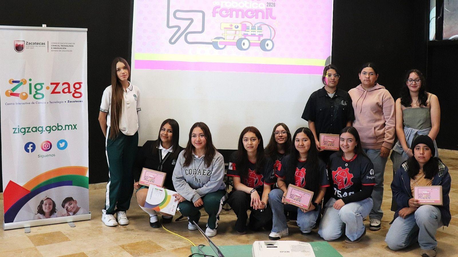 Integrantes de los 10 equipos que participarán en el Torneo Zigzag de Robótica Femenil, que organiza el Gobierno de Zacatecas, a través del Centro Interactivo de Ciencia y Tecnología Zigzag, recibieron los kits para el armado de sus robots, así como el reglamento de la competencia.
