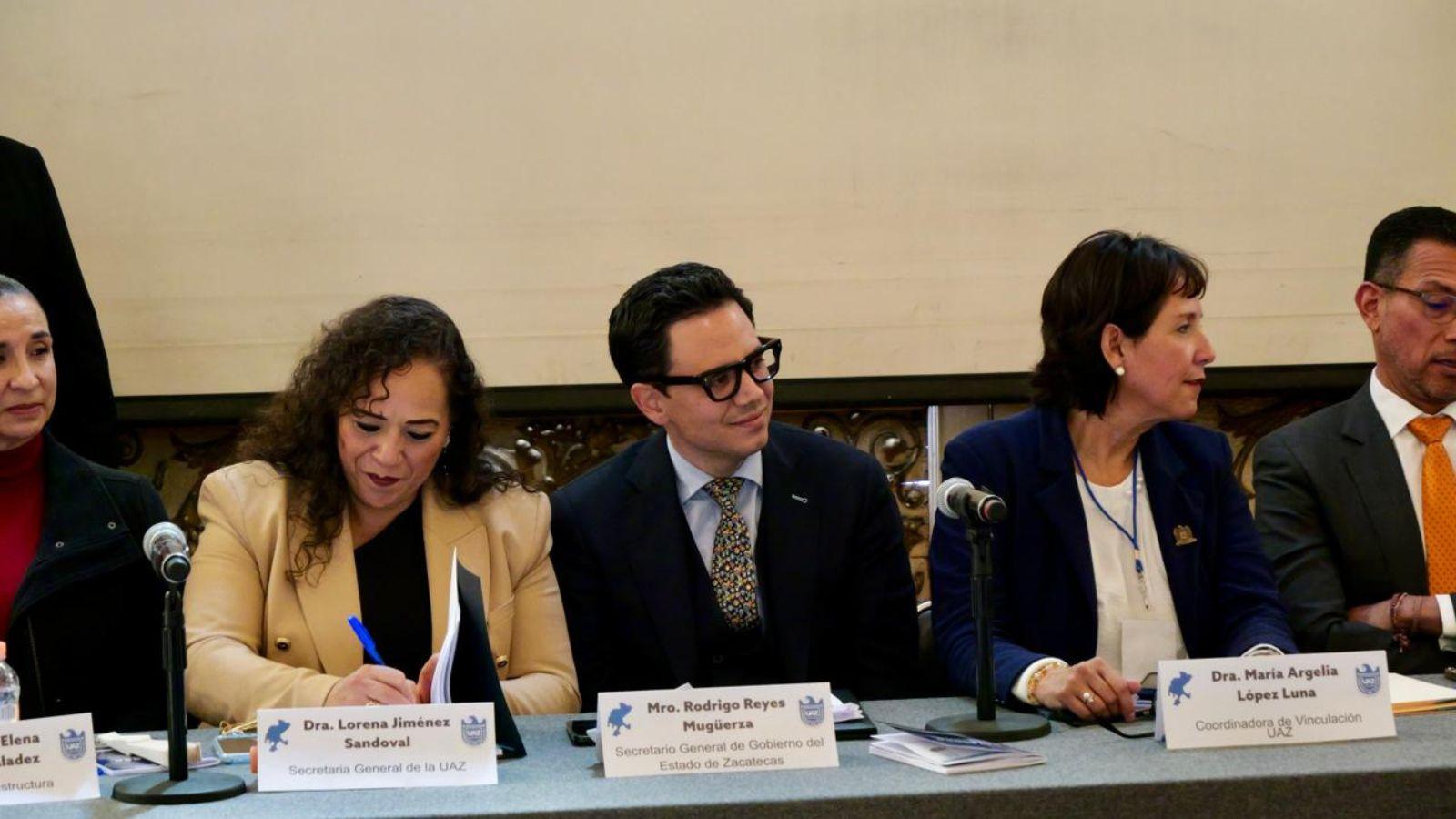 Luego de atestiguar la firma del convenio de colaboración y concertación de acciones entre la Universidad Autónoma de Zacatecas (UAZ) y los municipios de la entidad, el Secretario General de Gobierno, Rodrigo Reyes Mugüerza, en representación del Jefe del Ejecutivo, David Monreal Ávila, se pronunció por fomentar e impulsar la democratización del conocimiento, con la finalidad de generar mayor desarrollo en Zacatecas.