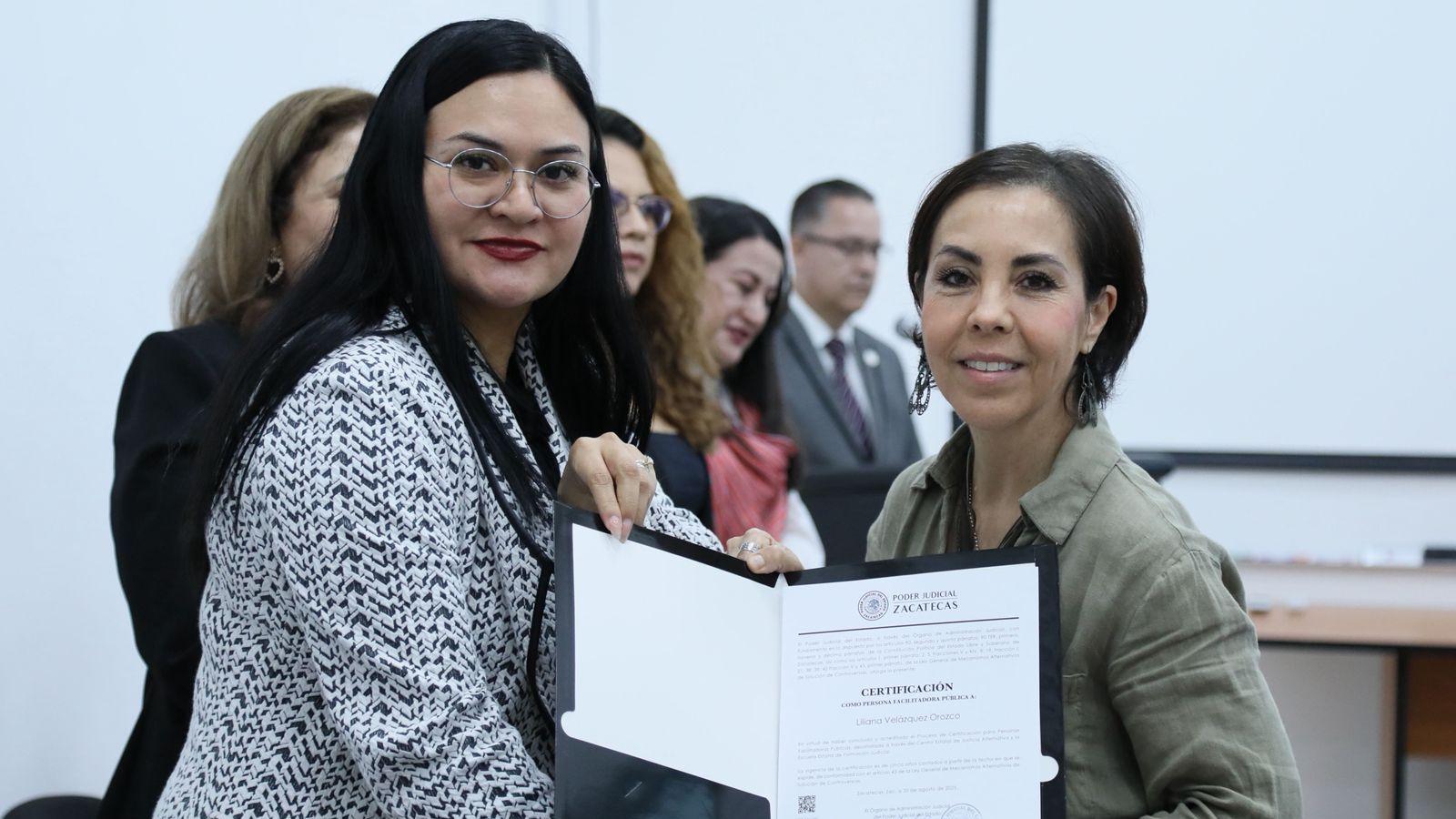 Por su parte, el Doctor Raúl Carrillo, Director de la Escuela de Formación Judicial, explicó que con la finalidad de despresurizar las cargas de trabajo de los poderes judiciales, la Ley General establece, que las Personas Facilitadoras Públicas adscritas a los Centros e Institutos de Mediación de los poderes judiciales, cuenten con las herramientas, para ofrecer a los justiciables una alternativa eficiente para la resolución de los conflictos, por lo anterior, señaló que la Certificación que hoy se otorga, cuenta con una vigencia de 5 años, con ello, el Poder Judicial del Estado, será uno de los primeros en dar cumplimiento a lo relativo a la Reforma en materia de Mecanismos Alternativos de Solución de Controversias.