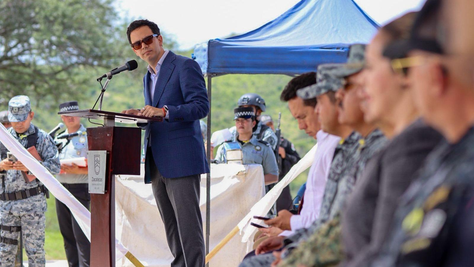 Lo anterior, ante los integrantes de la Mesa Estatal de Construcción de Paz, acompañado por el General Gerardo Serna, coordinador territorial, y del General Vicente Dimayuga, coordinador estatal de la Guardia Nacional; de Norma Castañeda Romero, alcaldesa de este municipio; del alcalde de Nochistlán, José Manuel Jiménez Fuentes, y de Juchipila, José María Castro Félix.