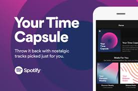Time Capsule (cápsula del tiempo) es una web de Spotify que se encarga de crear una playlist personalizada con canciones «que te llevarán a tu adolescencia, trayendo recuerdos gracias a dos horas de canciones icónicas».
