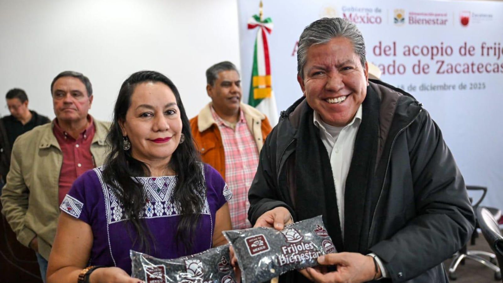 Asimismo, se anunció que la Presidenta Claudia Sheinbaum Pardo estará próximamente en Zacatecas para inaugurar la embolsadora de frijol en Sombrerete, municipio líder en producción nacional, desde donde se distribuirá el producto a más de 25 mil Tiendas Bienestar, con un precio final al consumidor de solo 30 pesos por kilogramo, muy por debajo del precio promedio de mercado de 42 pesos.