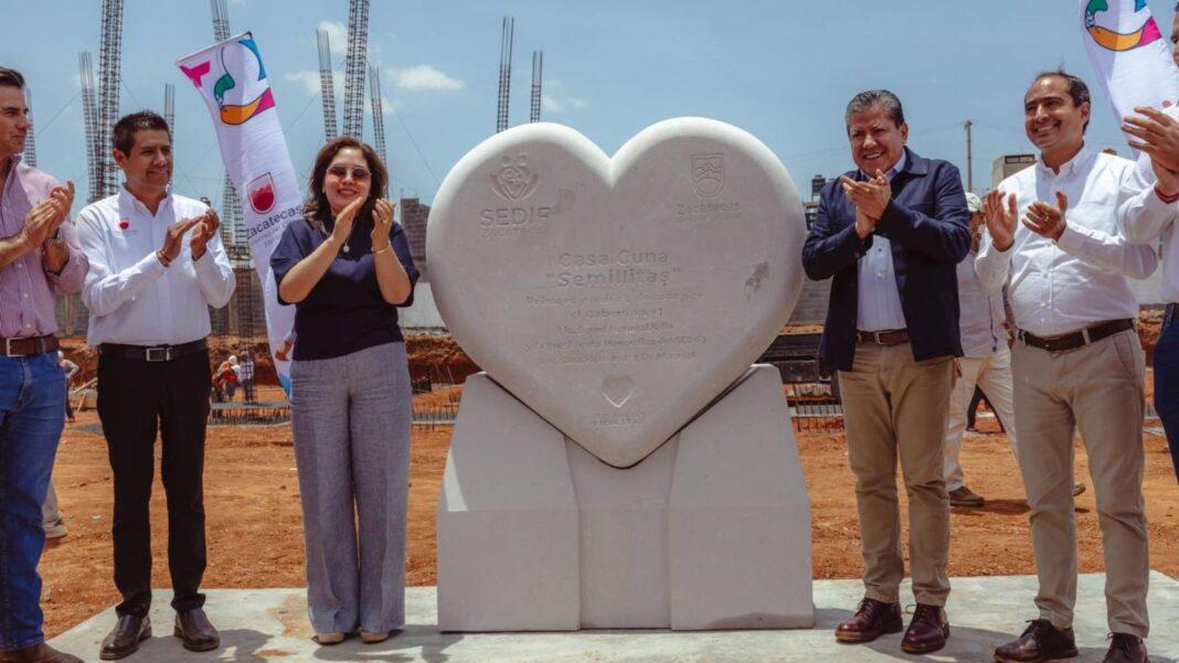 El Gobernador David Monreal Ávila y la Presidenta Honorífica del Sistema Estatal para el Desarrollo Integral de la Familia (SEDIF), Sara Hernández, colocaron la primera piedra de la Casa Cuna “Semillitas”, en el municipio de Guadalupe, espacio en el que se brindará atención integral a niñas, niños, adolescentes y jóvenes que requieren apoyo para su desarrollo y sano crecimiento.