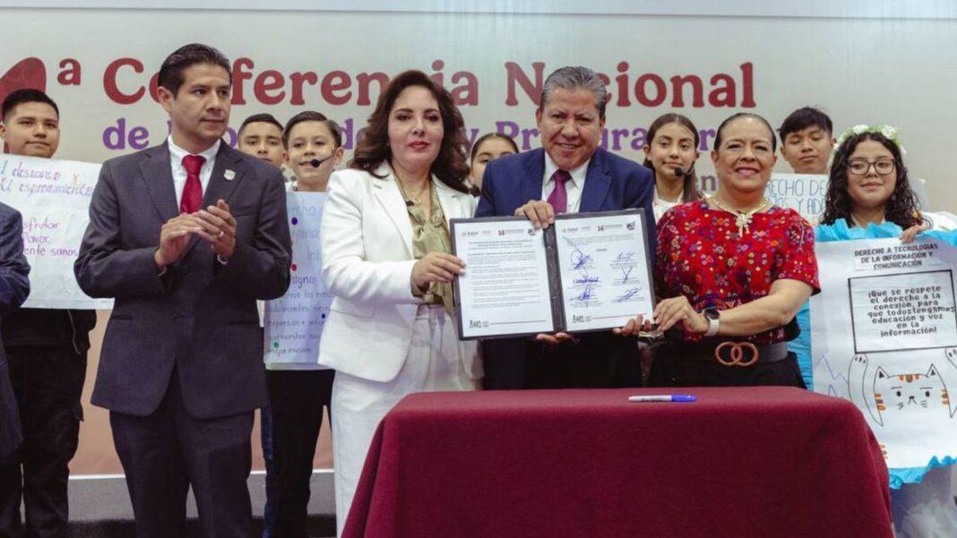 Previo a firmar la Declaratoria de Compromisos a favor de la promoción y protección de los derechos de estos grupos, reconoció a todas y todos los participantes en esta Convención, por preocuparse por las infancias y adolescencias, por lo que refrendó su convicción y su interés de colaborar para enriquecer y fortalecer la defensa de los derechos, de la paz y el bienestar de niños, niñas, adolescentes y las familias.